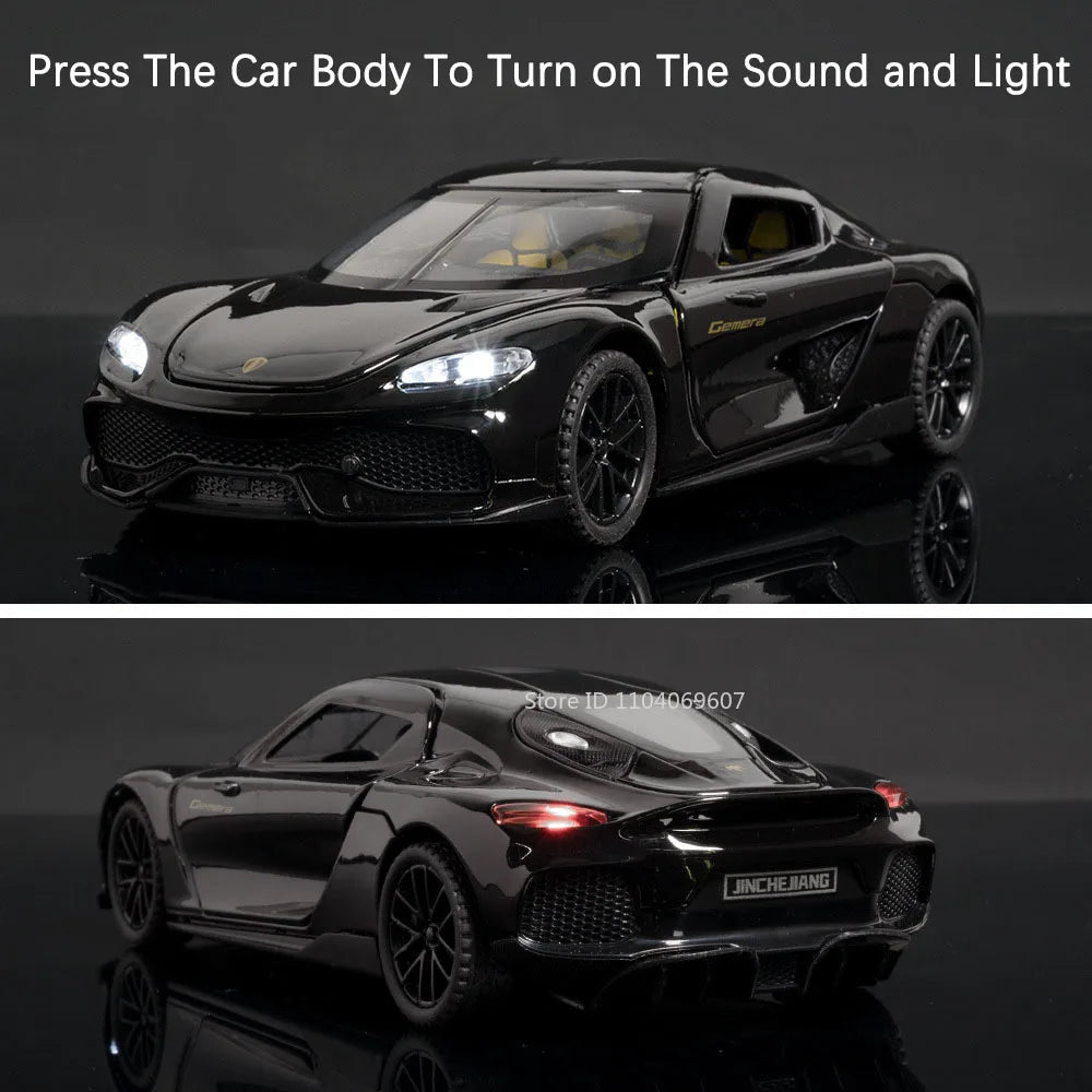 Experience the thrill of precision with the 1:32 Scale KNSG Gemera Diecast Car. Crafted with meticulous detail, this collectible model captures the sleek design and dynamic presence of the Gemera. Perfect for enthusiasts and collectors, it offers a durable build and authentic look that stands out on any display. Elevate your collection with this striking diecast car that combines quality craftsmanship and eye-catching style.